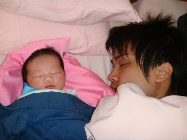 父子倆一起睡的模樣,哈~長的很像吧!